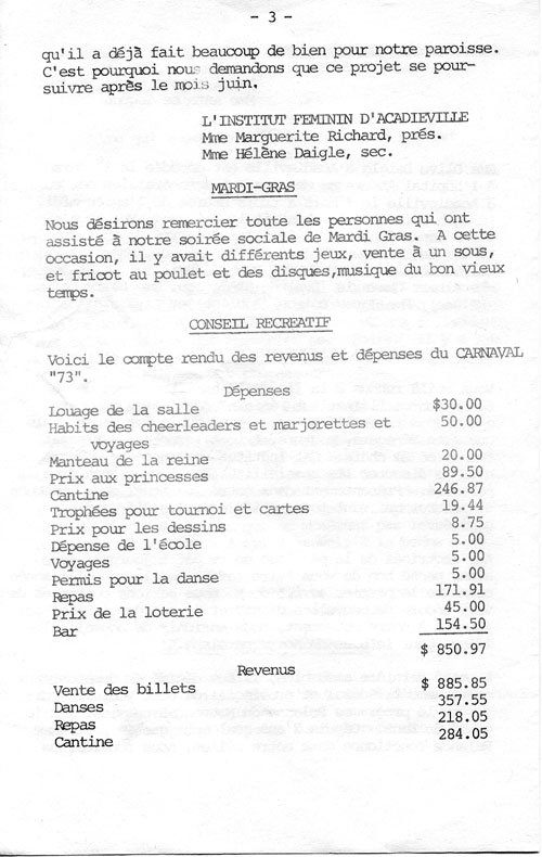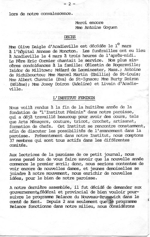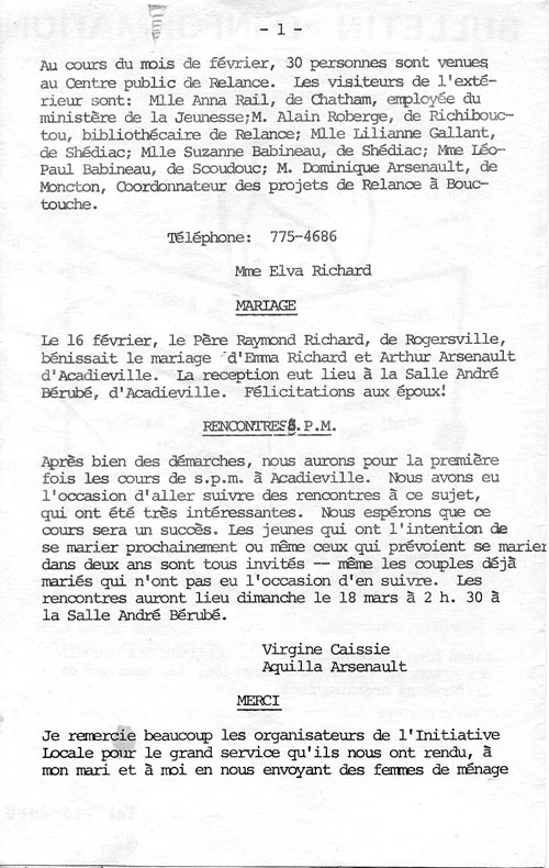 Journal d'Acadieville - Mars 1973