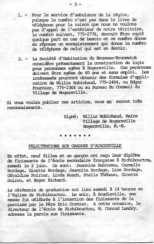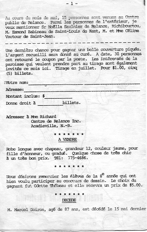 Journal d'Acadieville - Juin 1973