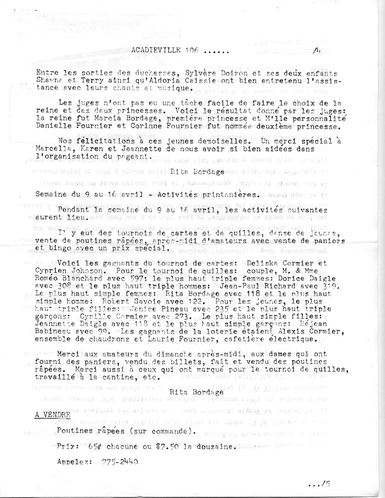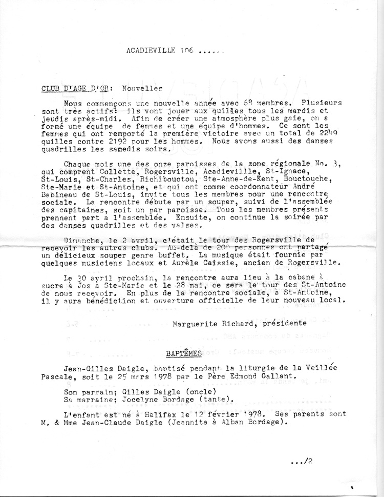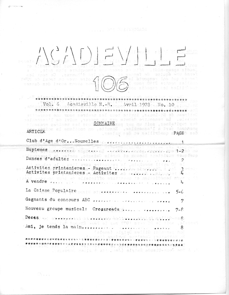 Journal d'Acadieville - Avril 1978