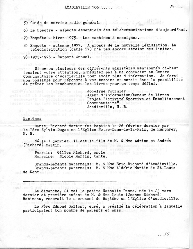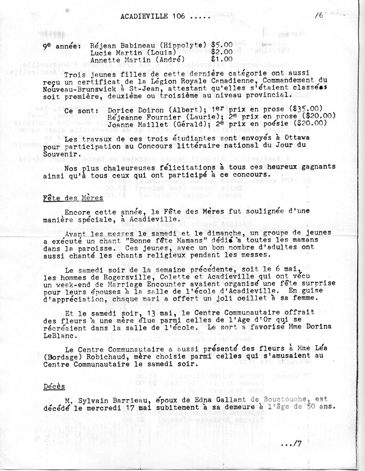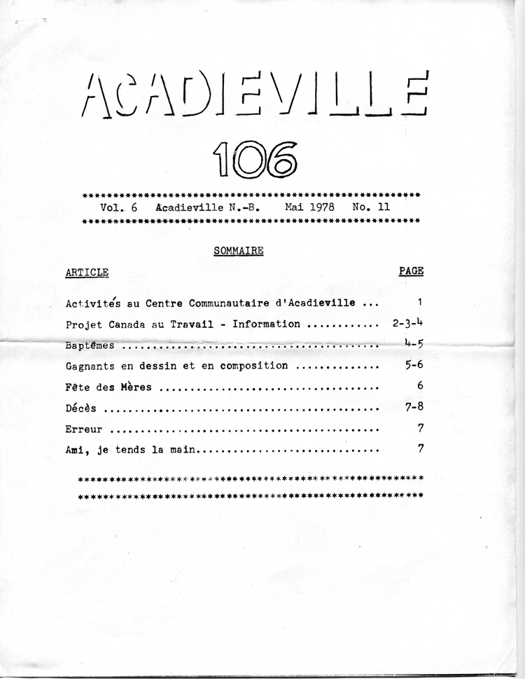 Journal d'Acadieville - Mai 1978
