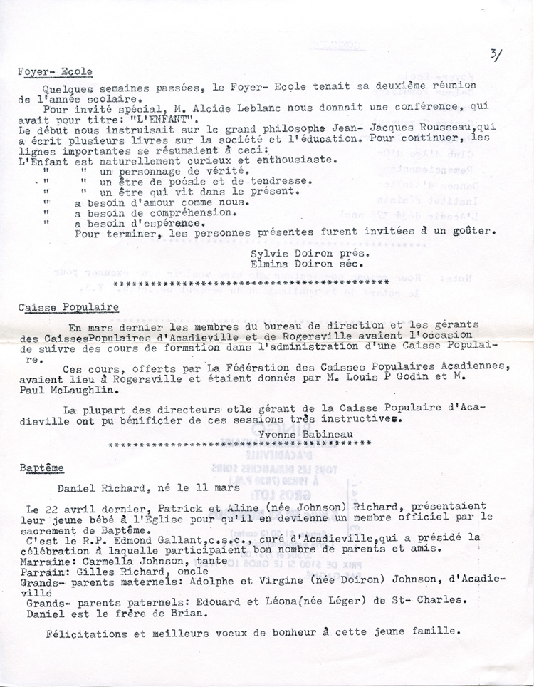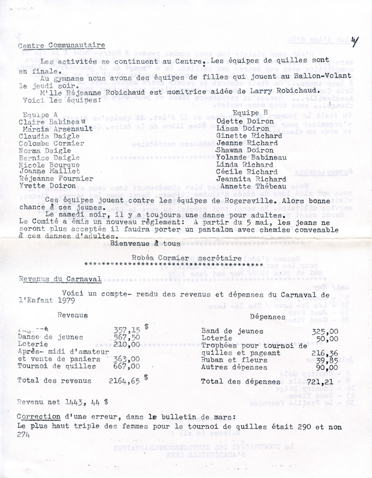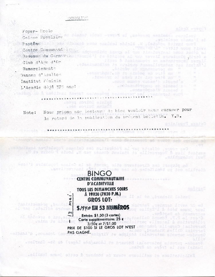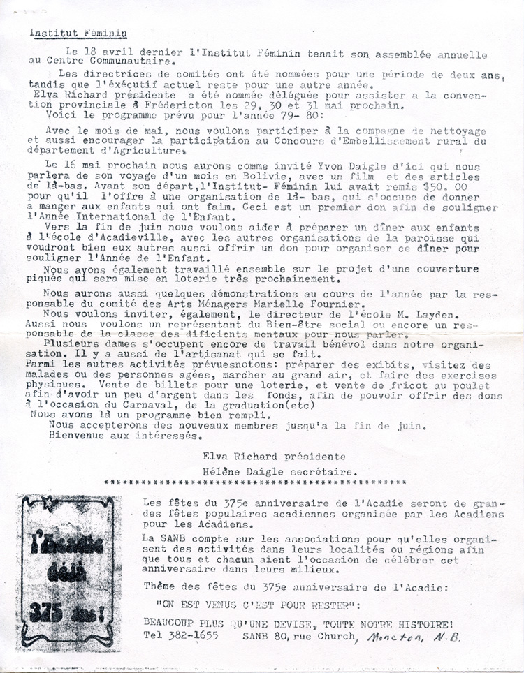 Journal d'Acadieville - Avril 1979