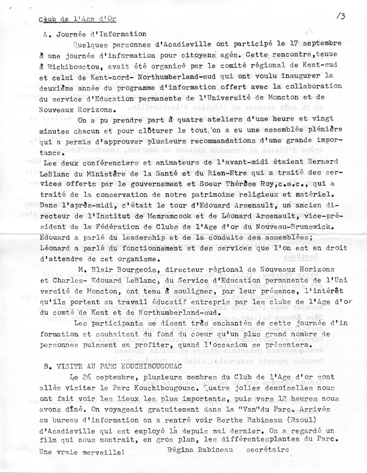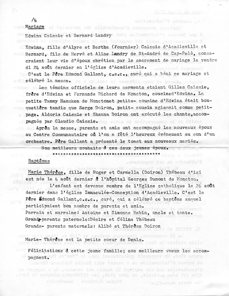 Journal d'Acadieville - Septembre 1979
